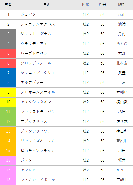 24′ ホープフルステークス枠順確定 ホープフルステークス X Facebook はてブ Pocket LINE コピー 2024.12.262025.01.08 スポンサー 想定一番人気のクロワデュノールは3枠6番。マスカレードボールは大外枠の18番に入りました。