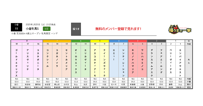 小倉牝馬Sの競馬新聞【無料】 メンバー限定 X Facebook はてブ Pocket LINE コピー 2025.01.24 スポンサー この記事はメンバー限定となっております。メンバーの方はログインしてからご覧ください。 まだメンバーでない方は、下記からユーザー登録をおこなってください。既存ユーザのログインユーザー名またはメールアドレスパスワード ログイン状態を保存する パスワードを忘れた場合 パスワードリセット新規ユーザー登録ユーザー名*名姓メール*パスワード**必須項目