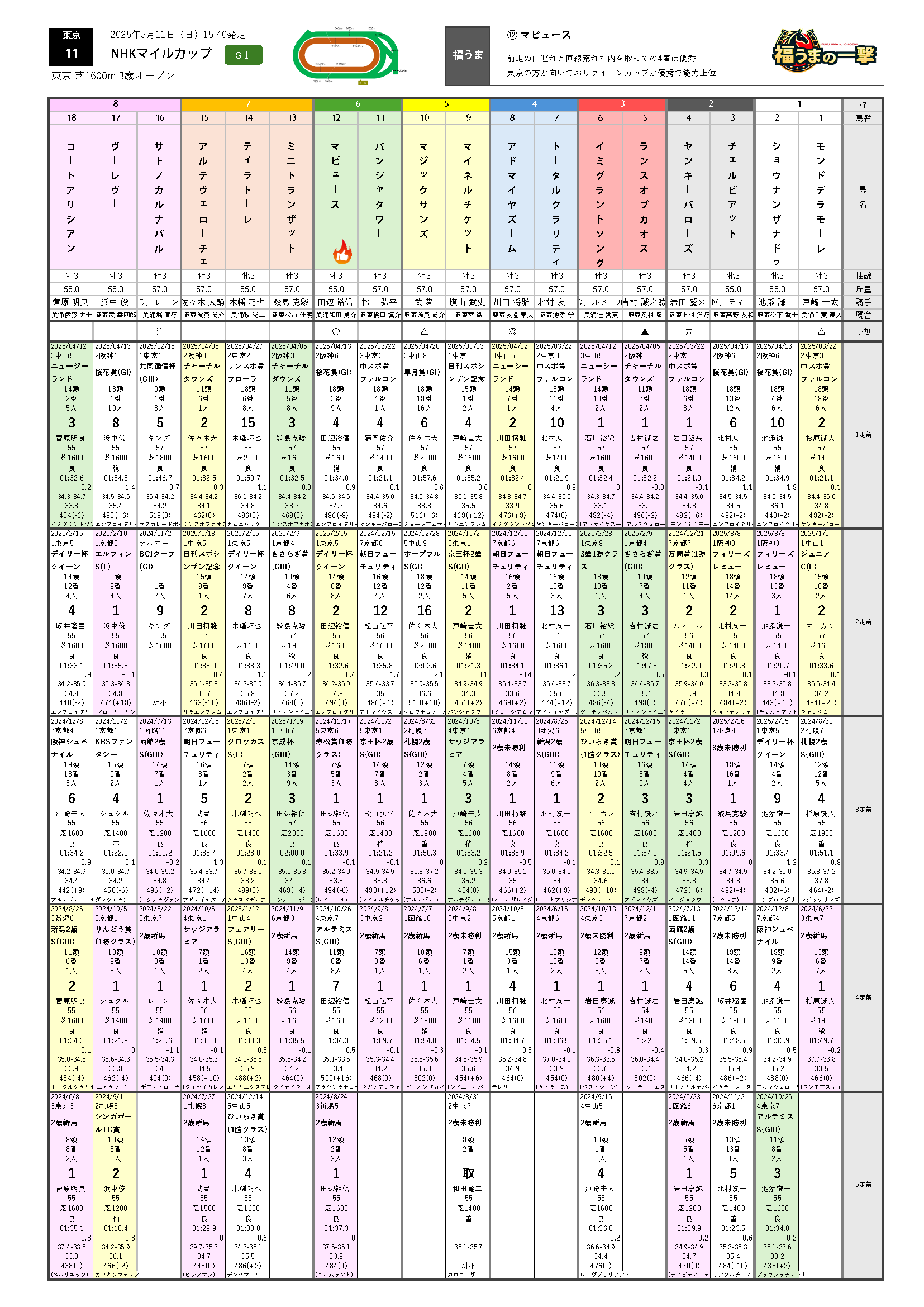 - NHKマイルカップ(GⅠ)の競馬新聞【無料】【予想付き】 (投稿日: 2025-05-09)